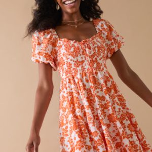 Smocked Upper Flowy Floral Mini Dress
